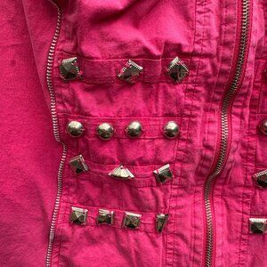 Vintage Y2K Maribelle Padded Bra Zip Ruffle Collar Detail Studded Pink Top XL