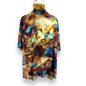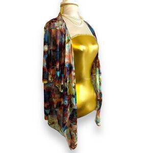 Vintage Y2K Maurices Sheer Watercolor Open Front Flowy Kimono Sweater sz 2X Boho Artsy Festival