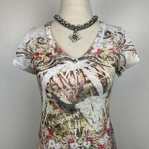 Vintage Y2K Maurice’s Western Grunge Women’s T Shirt Size S All Over Print