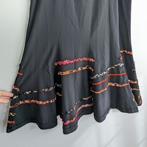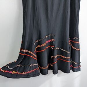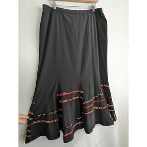 Pull on maxi skirt with colorful embellishments from Alain Weiz, size 16. Mermaid/flare silhouette. Ideal for artsy, eclectic, colorful, funky, and playful vibes. Perfect for business casual, going out, work, weekends, and travel. Pair with a blouse or sweater