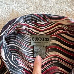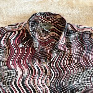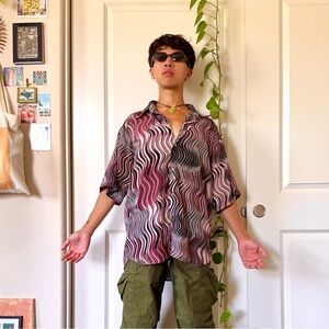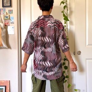 Vintage Y2K Men’s Wavy Red & Black Button-Up Shirt