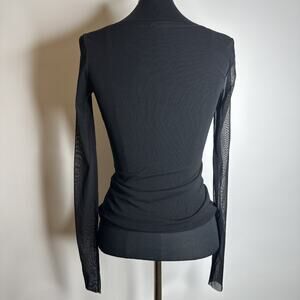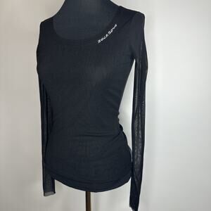 Vintage Y2K Mesh Long Sleeve Sheer Top Size M Rhinestone Black Goth Grunge Italy