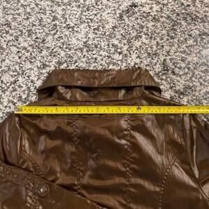 Vintage Y2K Metallic Brown Animal Print Lined Jacket Womens Medium Zip Snap Coat