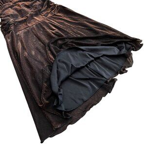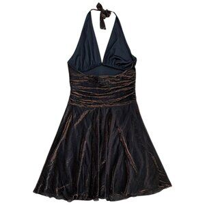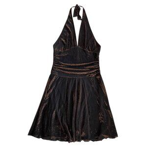 Vintage Y2K Metallic Halter Ruched Mini Dress Bronze Large Glam Party Holiday
