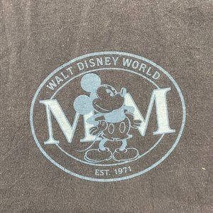 Navy blue sleeveless crewneck tank top by Walt Disney World with blue Mickey Mouse circle graphic. Boxy fit. Essential 2000s Disney cartoon tee.