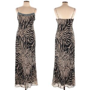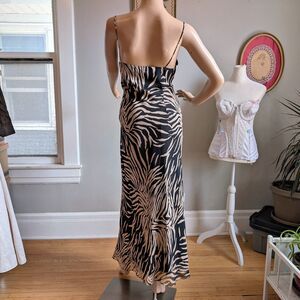 Vintage Y2K Midi Dress Silk Animal Print Floral Fairy Whimsygoth Zebra 10