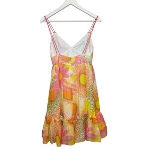 Vintage Y2K Milly Silk Dress Retro Pink Orange Floral Mod Empire Babydoll 2