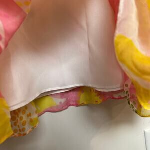 Vintage Y2K Milly Silk Dress Retro Pink Orange Floral Mod Empire Babydoll 2. 60s and 70s mod style with a retro floral in pink, orange, yellow, and green. Thin spaghetti straps, babydoll waistline, and v neckline. Fully lined.