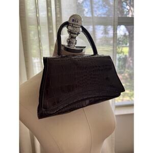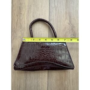 Vintage Y2K Mini Oxblood Brown Croc Embossed Patent Leather Abstract Handbag