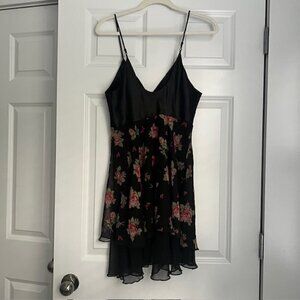Y2K rose rosette floral LBD silk slip dress mini dress