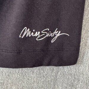 Vintage Y2K Miss Sixty Black Square Neckline Rhinestone Edged Long Fitted Top Size Medium