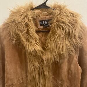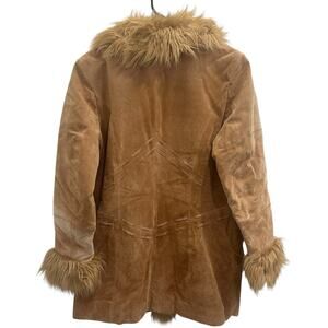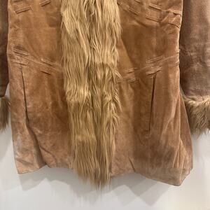 Vintage Y2K Mixit Tan Suede Penny Lane Afghan Coat Hippie Retro Boho Halloween