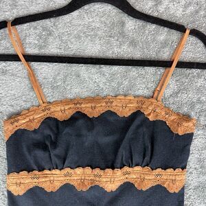 Vintage Y2K Moa Moa Lace Accent Tank Top Women Size Medium Stretch Made in USA