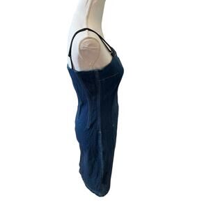 Vintage Y2K Moda International Boned Denim Corset Dress, size 10, listing as a M as vintage runs smaller. Good preowned condition, material is a cotton spandex blend and the dress zips up the back. Features adjustable skinny straps and a boned corset top. Note there is a small bit of fabric pulling loose at the bottom of the zipper.