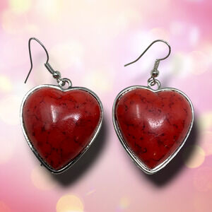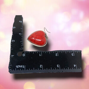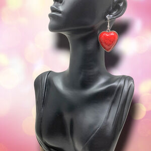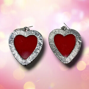 Vintage Y2K Modernist Dangle Red Acrylic Heart Earrings Pierced New Wave Retro