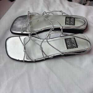 Vintage Y2K Mootsies Tootsies Strappy Flat Square Toe Sandal Silver Beads 8.5