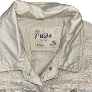 Vintage Y2K Mudd Lace Distressed White Denim Vest Womens M Cowgirl Western Boho
