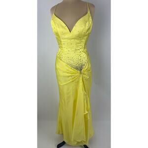 Vintage Y2K NIght Moves Size 8 Canary Yellow Prom Dress Formal Gown 2000s