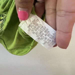 Vintage Y2K NWT Lime Green Sequin Top Women’s Large 3/4 Sleeve Ruched Gold