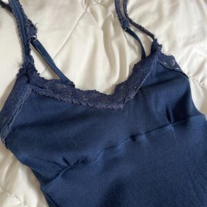 Cute rare unique 2000s vintage navy blue lace trim cami tank top from American Eagle Outfitters