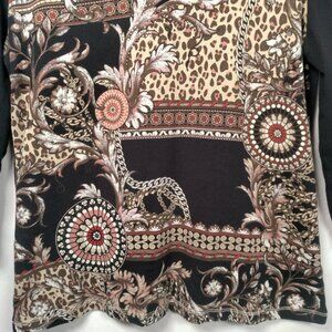 Vintage Y2K New Directions Petite Shirt PXL Black Cat Print Mandala Chain Bling