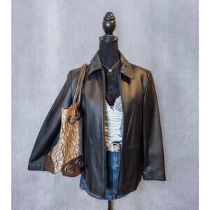 Vintage Y2K New York & Company Canvas Monogram Faux Leather Drawstring Tote