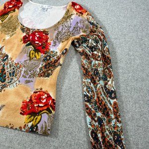 Vintage Y2K Newport News Womens Top Sweater Medium Floral Scoop Neck Sequin