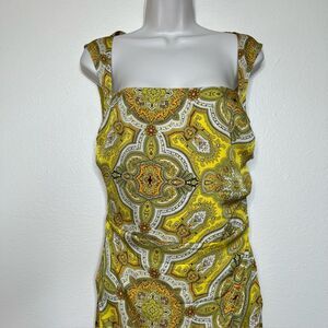 Vintage Y2K Nicole Miller Silk Dress Square Neck Sleeveless Ruching Women 10