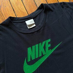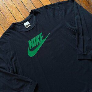 Vintage Y2K Nike Icon Long Sleeve Shirt Men XL Black Green Spell Out Swoosh.
