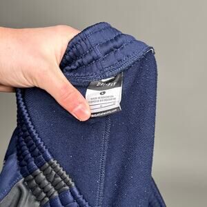 Nike Sweatpants Navy Blue Polyester Baggy Wide Leg White Swoosh Grey Dri Fit has Ankle Zippers