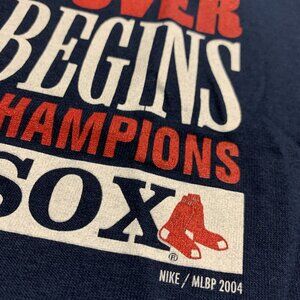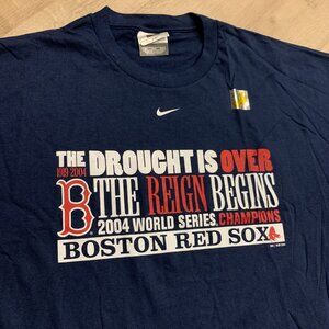 Vintage Y2K Nike Team Boston Red Sox Center Swoosh 2004 World Series T-Shirt Men's XXL 2XL Navy Blue MLB Baseball "The Drought is Over The Reign Begins" Champions Tee
