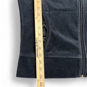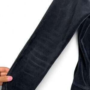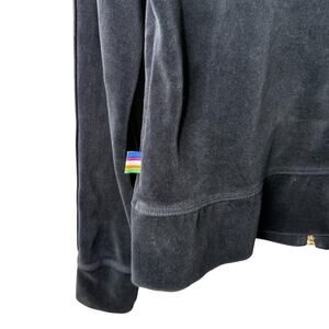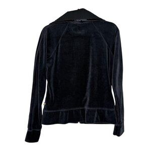 Soft black velour exterior with ribbed shawl-style collar and scalloped front pocket detail. Tag size is Girls Large (12–14) but fits like a Women’s XS/Small — see flat lay measurements in photos.
