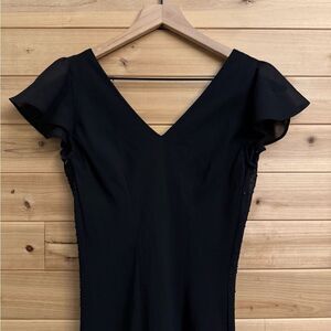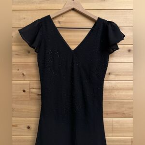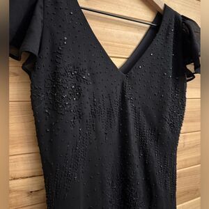 Black V Neck Front & Back Heavily Beaded Floral Front With Flutter Sleeves. Labeled As Size Medium Measures More Like A Small