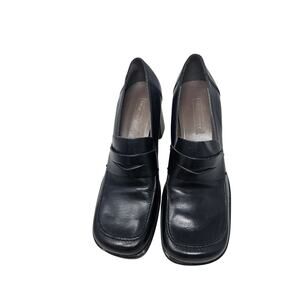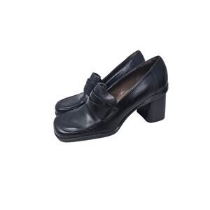 Vintage Y2K Nine West 9 Chunky Square Toe Loafer Grunge Whimsygoth Goth Black Leather