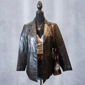 Vintage Y2K Nine West Black Leather Alligator Print Button Front Jacket Medium
