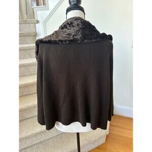 Excellent condition. Long sleeve, rib knit cardigan. Single latch at neckline. Oversize faux fur collar.