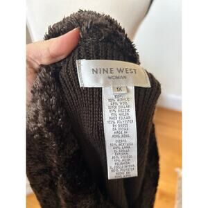 Vintage Y2K Nine West Brown Wool Knit Faux Fur Collar Long Sleeve Cardigan