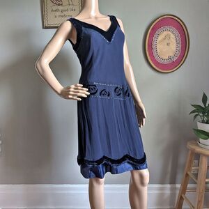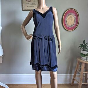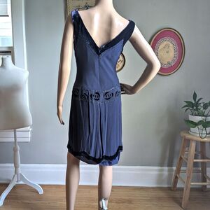 Vintage Y2K Nine West Silk Mini Dress Blue Velvet Flapper 1920s Drop Waist 4