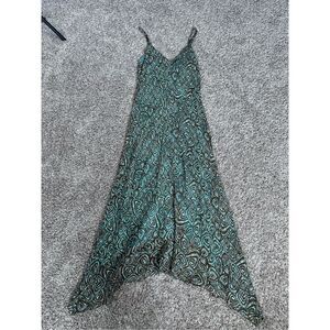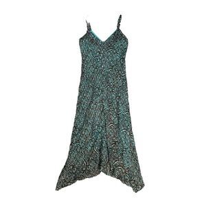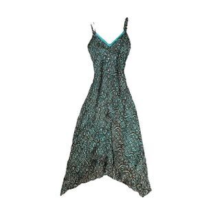 Vintage Y2K Nine West Silk Slip Dress 4 Midi Sleeveless Teal Brown Sequin Fairy