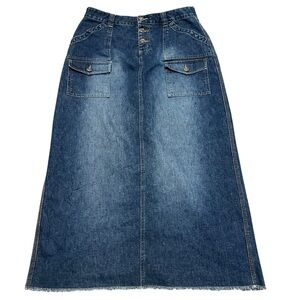 Vintage Y2K No Boundaries Blue denim maxi skirt with pockets size 11