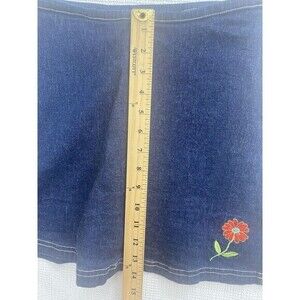 Elevate your Y2K wardrobe with this vintage No Boundaries juniors skirt. The dark wash micro mini denim fabric is accented with a floral pattern, embroidered details, and a zipper closure. Perfect for a party or casual outing, this skirt is made of spandex and cotton and is machine washable for easy care. The stretchy fabric and slit detailing provide a comfortable and flattering fit. This skirt is a size 3 and is ideal for summer, fall, and spring seasons. Coconutgirl and Bimbo themes add a touch of fun to this 90s inspired piece.