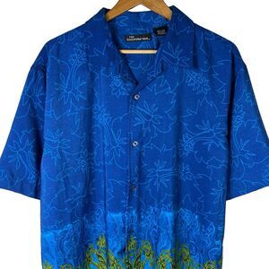 Vintage Y2K No Boundaries Sz Large Button Up Shirt Hawaiian Tiki Floral Beach