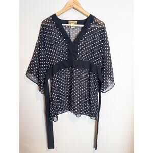 Vintage Y2K Notations Sheer Black Polka Dot Metallic Stripe Empire Waist Blouse