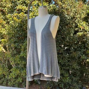 Vintage Y2K Nu Label Gray Striped Ruffle Boho Vest