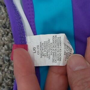 Vintage Y2K OP Blue & Purple Striped Bikini L 11-13 Adjustable Tie Beach