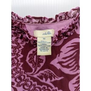 Vintage Y2K Odille Anthropologie Boho Floral Fit & Flare Dress Maroon Pink Sz 10
