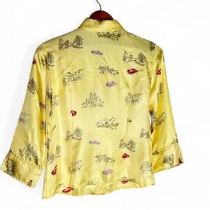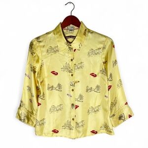 Vintage Y2K Odille Silk Blouse Anthropologie Yellow Toile Lip Print Size 6
