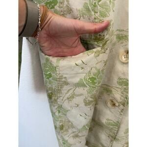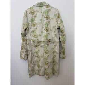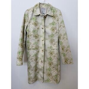 Vintage Y2K Old Navy Floral Botanical Trench Coat Pockets Lined Green Cream L