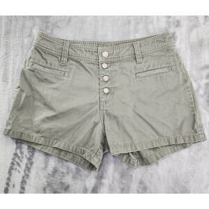 Vintage Y2K Old Navy Shorts Womens 6 Green Khaki Mid Rise Exposed Button Fly Casual Cotton