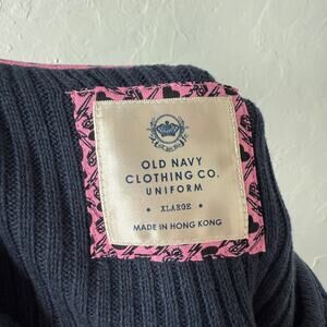 Vintage Y2K Old Navy Women's Sweater XS Cable Knit Hooded Navy Cotton X4-25